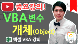 | 엑셀 VBA 변수 기초 강의 - 개체 Object 변수에 대하여 | 엑셀 VBA 강의 1-5 | 실습파일 무료E-Book 강의 PPT 파일 완성파일 첨부파일에 이상이 생겼을 경우, 1:1 문의하기로 연락주시면 신속히 해결해드리겠습니다. 1. 개체변수(Object)를 지정할 때 Dim / Set을 사용하는 이유 개체(Object)를 VBA 변수로 지정할 경우 반드시 Set을 사용해야 하는데요, 왜 그럴까요? 이를 이해하기 위해서는 우선 ... 더보기 >>