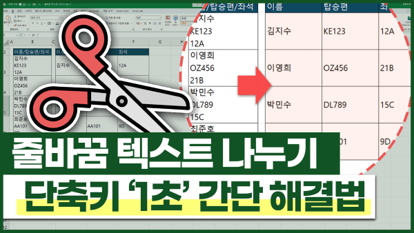 📝 엑셀 줄바꿈 텍스트 나누기 [tspan t='텍스트 마법사 실행하기'] 범위를 선택한 후, Alt - A - E 를 차례대로 눌러 텍스트 나누기 마법사를 실행합니다...