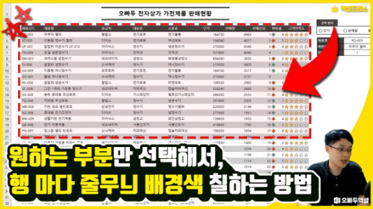 엑셀 줄무늬 행 배경 색상 적용하는 방법의 모든 것 엑셀 줄무늬 행 배경색 적용 - 목차 바로가기 엑셀 조건부 서식의 모든것 총정리 - 기초입문강의 엑셀 새로운 데이터에 자동 테두리 적용하기 - 엑셀프레소 예제파일 다운로드 표 기능을 사용하여 줄무늬 행 색상 적용하기 표 기능을 사용할 경우의 제한 사항 조건부서식을 사용하여 엑셀 줄무늬 행 배경색 적용하기 실제 ... 더보기 >>