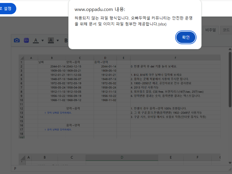 정보공유 계시판에 글 쓰고 엑셀 올렸는데 안된다네요.