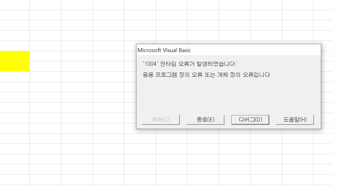 임의의 셀 선택: 노랑 바탕색