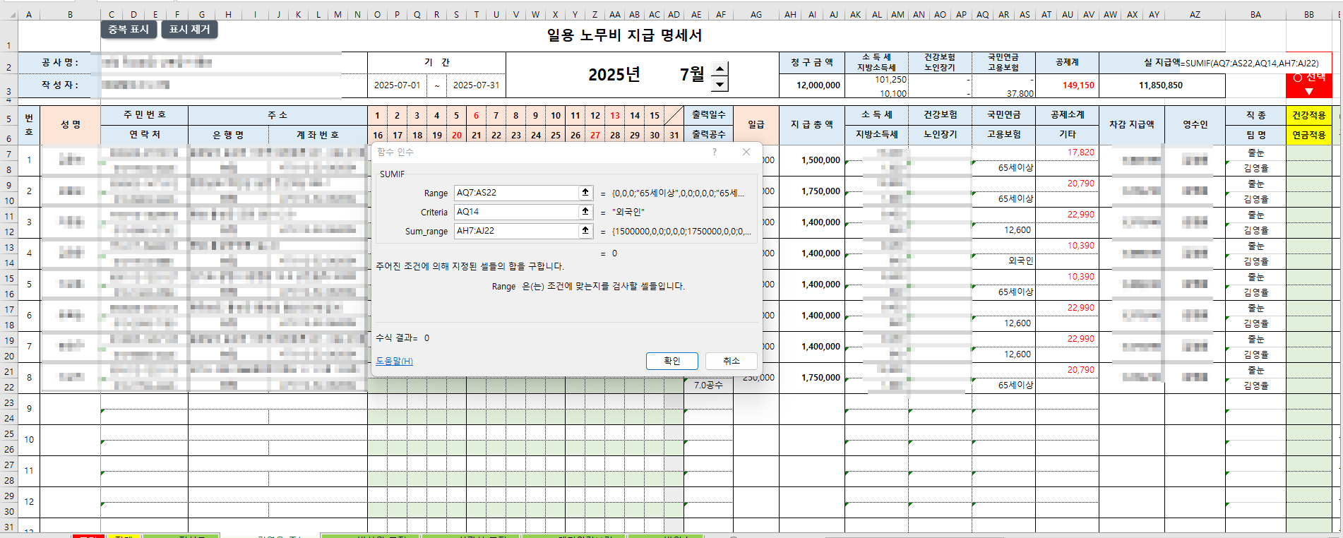 sumifs 쓰시구요