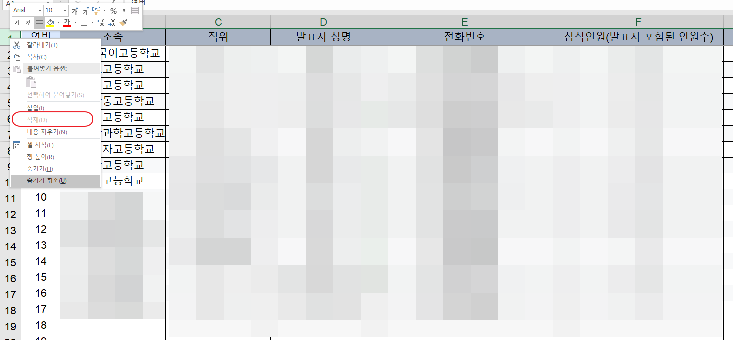 셀삭제 및 필터링이 안돼요 ㅜㅜ