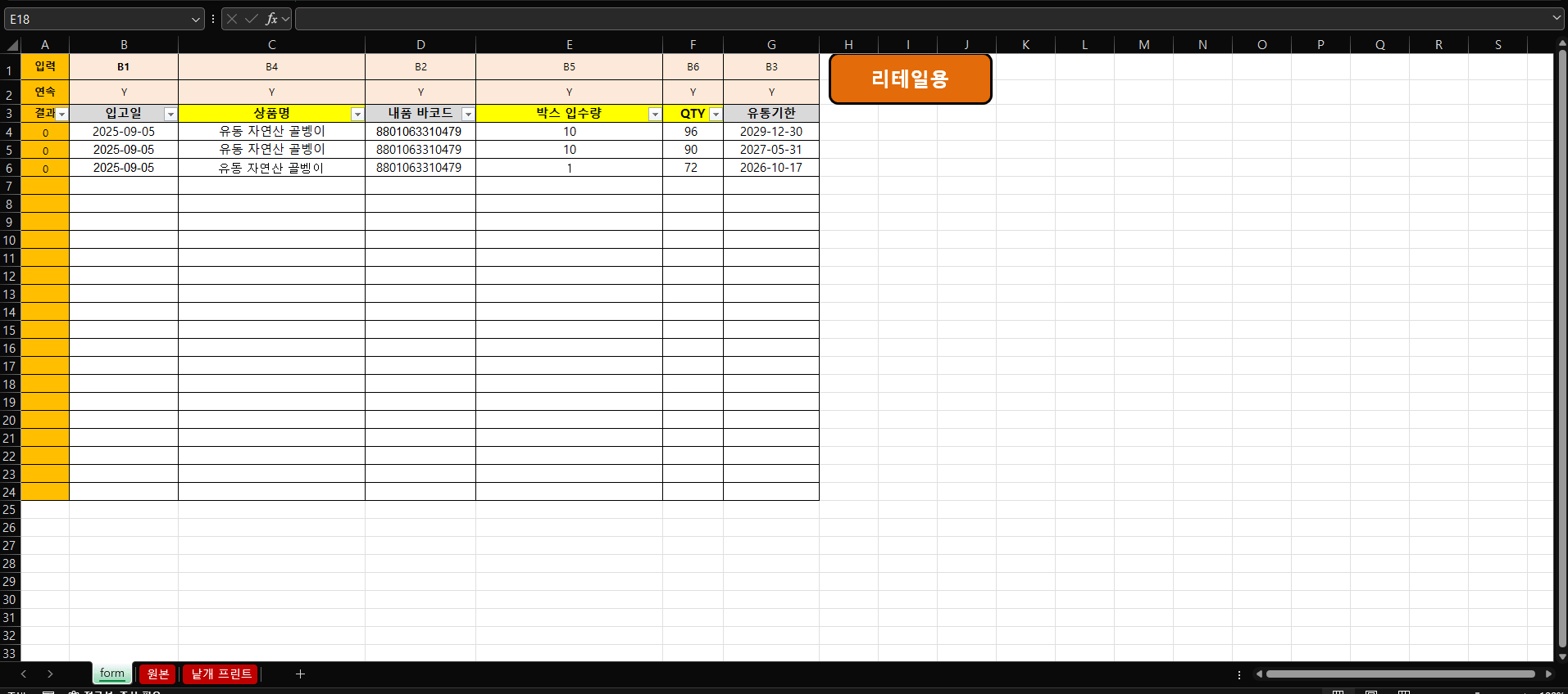 리테일용을 누르면
