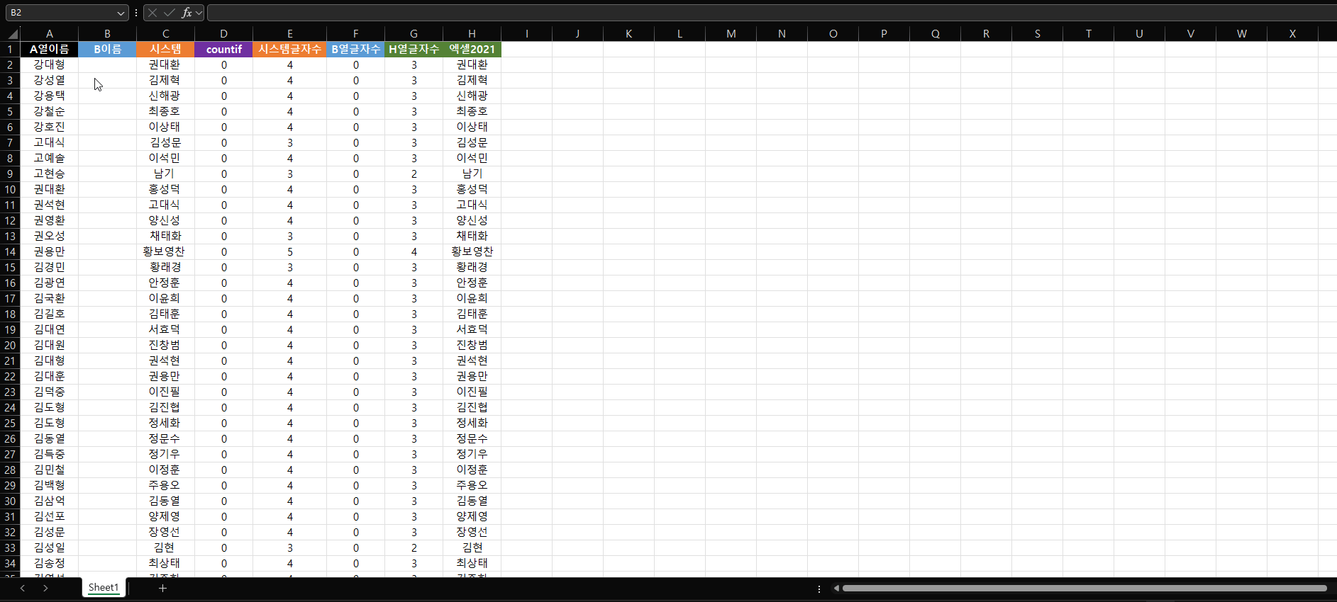countif 결과 값이 계속 0으로 나오네요..ㅠ