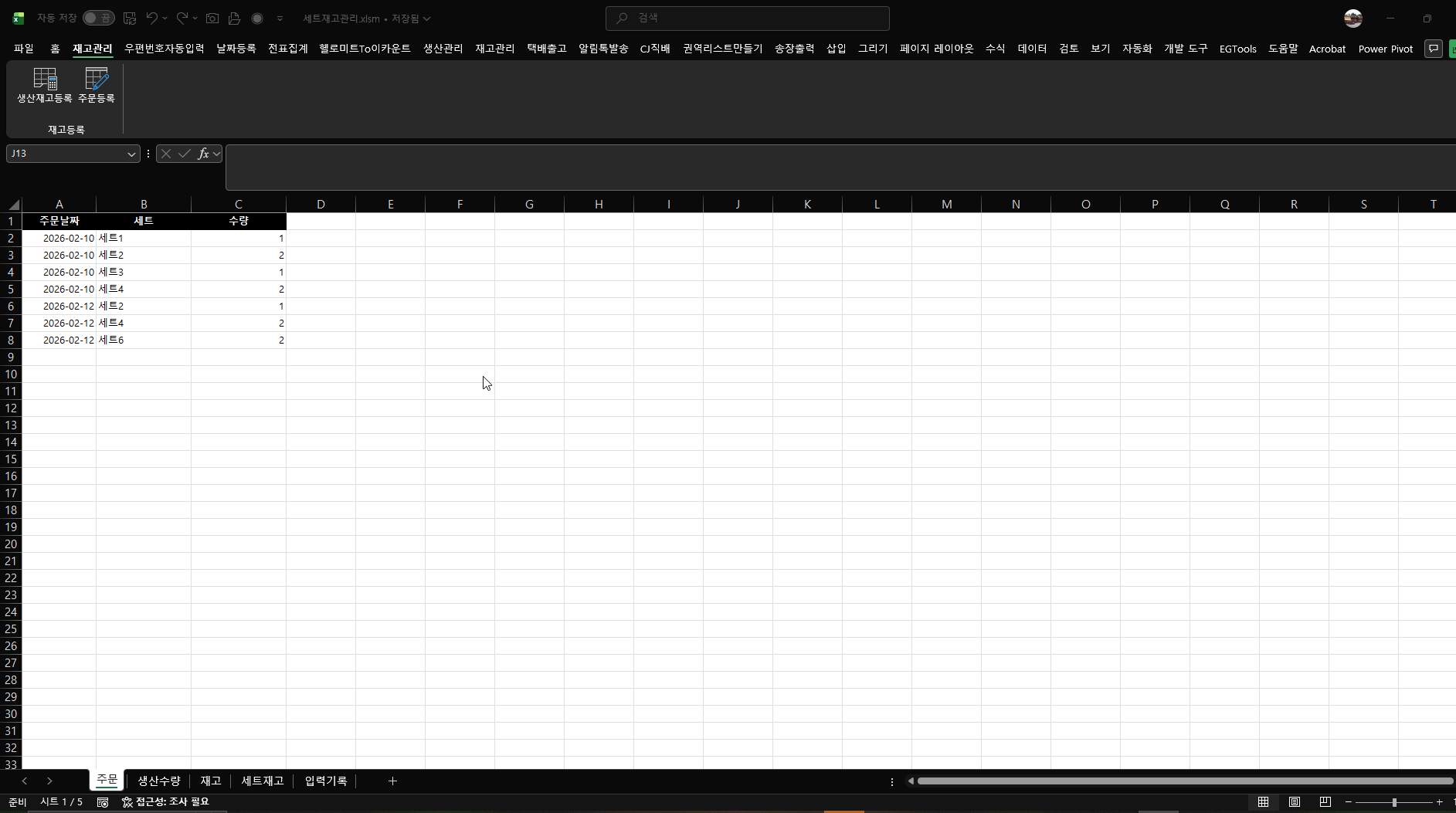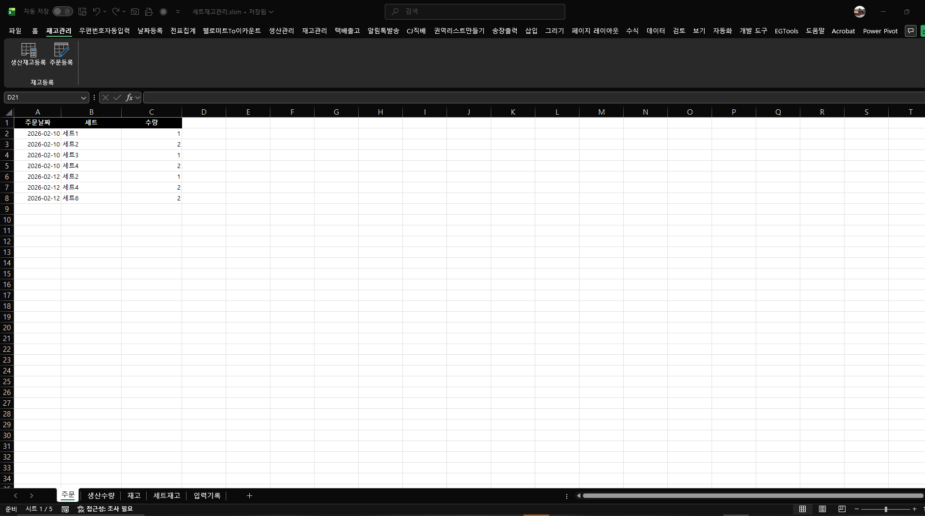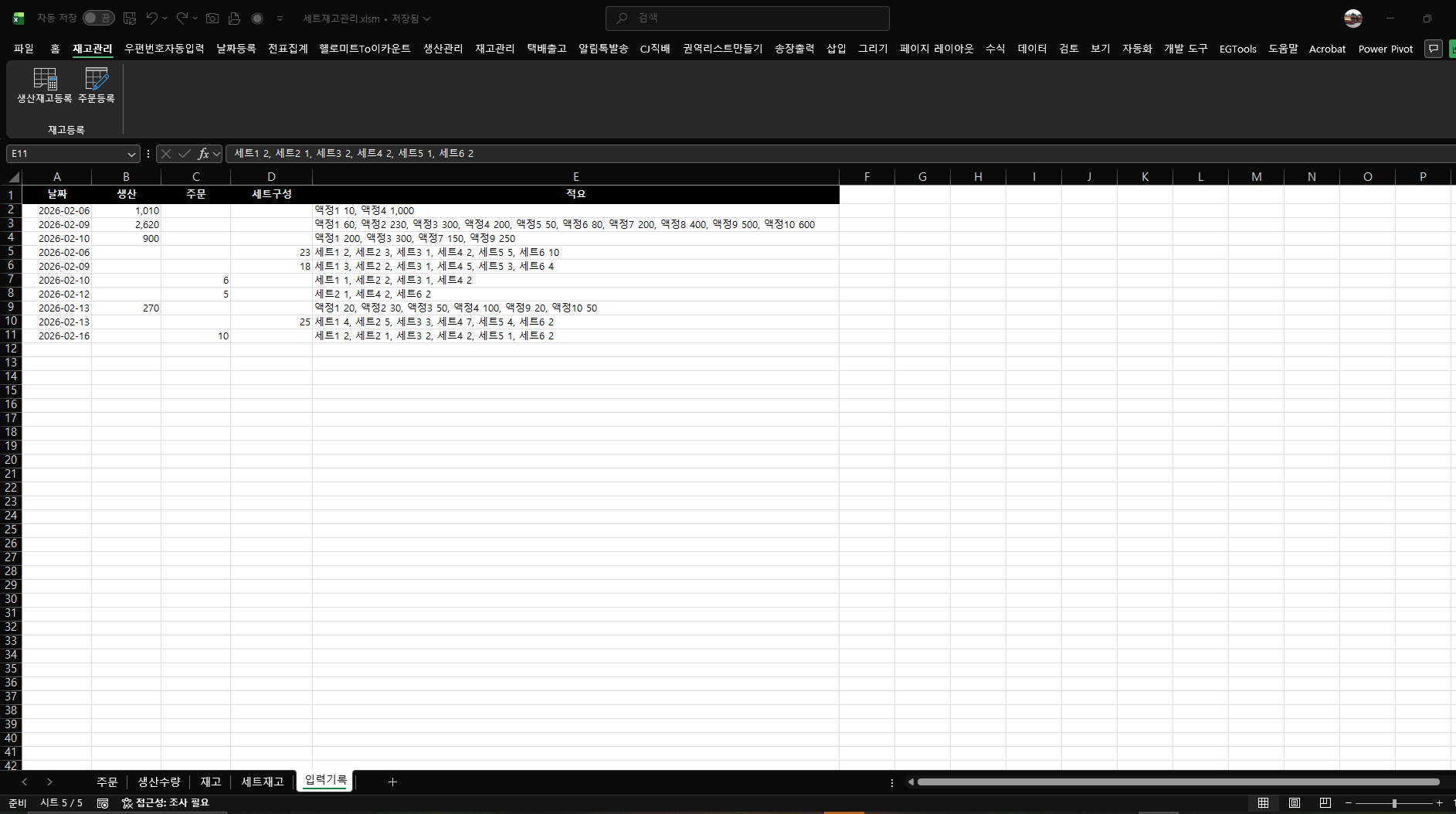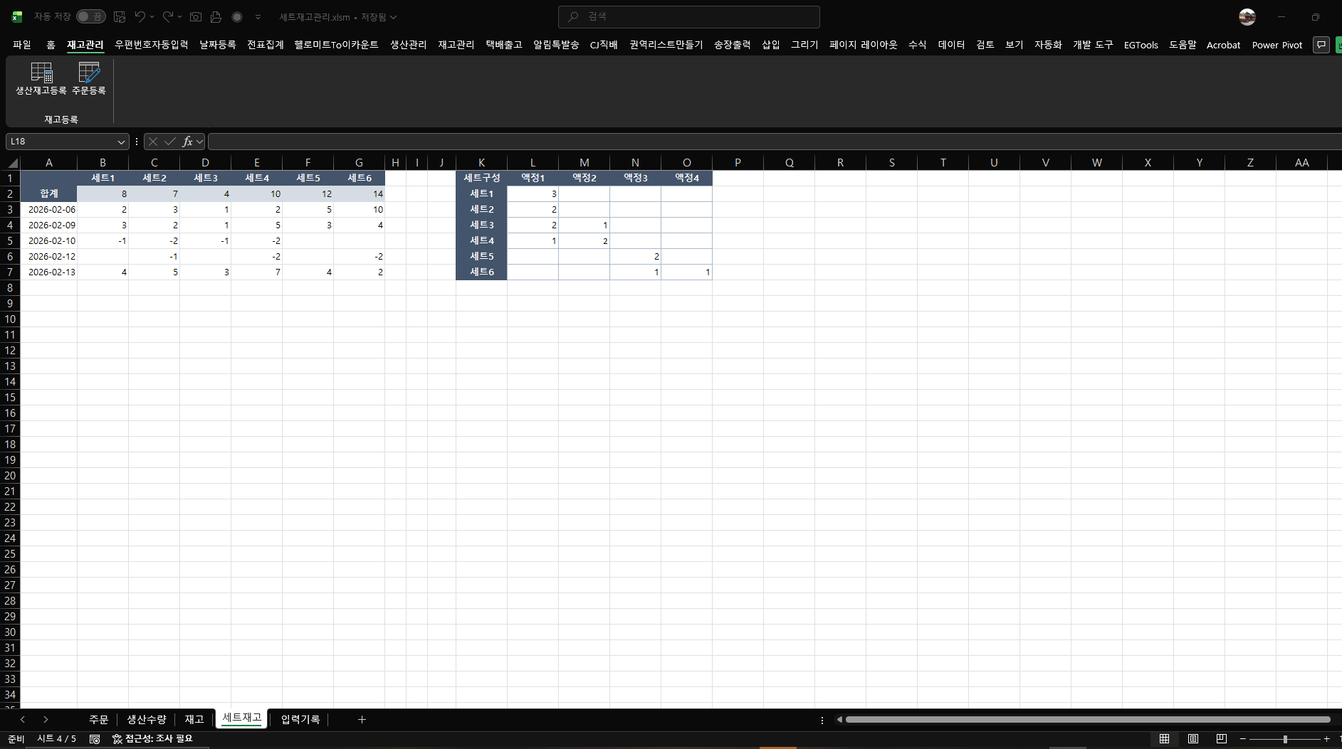 세트재고:생산한 제품을 가지고 주문전에 미리 세트를 만들어 관리하는 시트