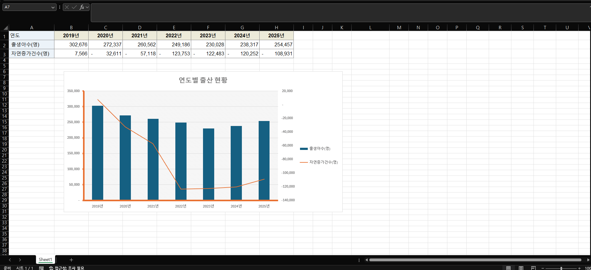 차트 → 데이터 선택 → 해당 계열 편집