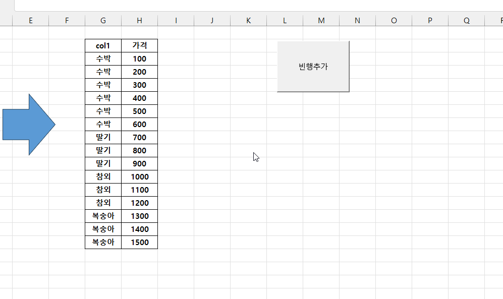 목록에 빈줄을 추가한 배열을 일련번호 목록을 쪼개서 ChooseRows로 출력