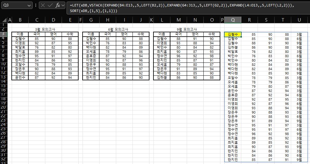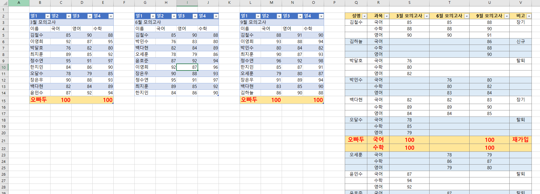 [퀴즈_71] 성적 관리 표만들기