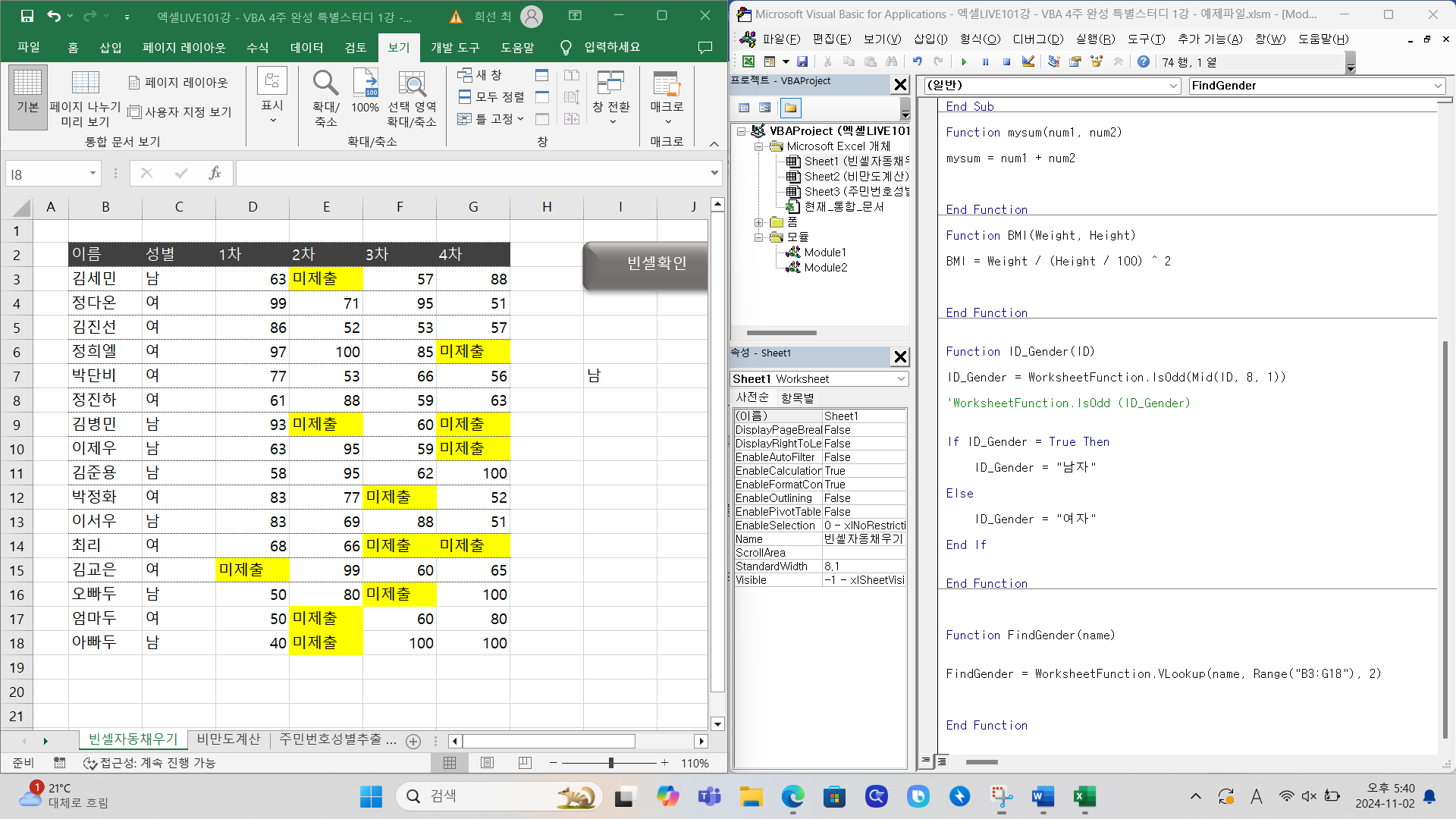 엑셀 기초 4시간 완성, 원데이 챌린지 3일차