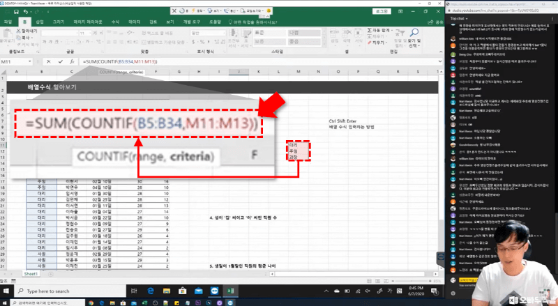 여러 조건을 만족하는 값의 개수를 구할 때, COUNTIF 함수만 사용할 경우 조건의 개수에 따라 더하기로 입력해줘야 하는 번거로움이 있었습니다.